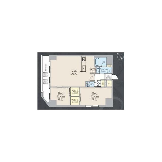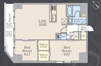 2LDK(LDK20.8・洋室9.5・洋室6.1) |